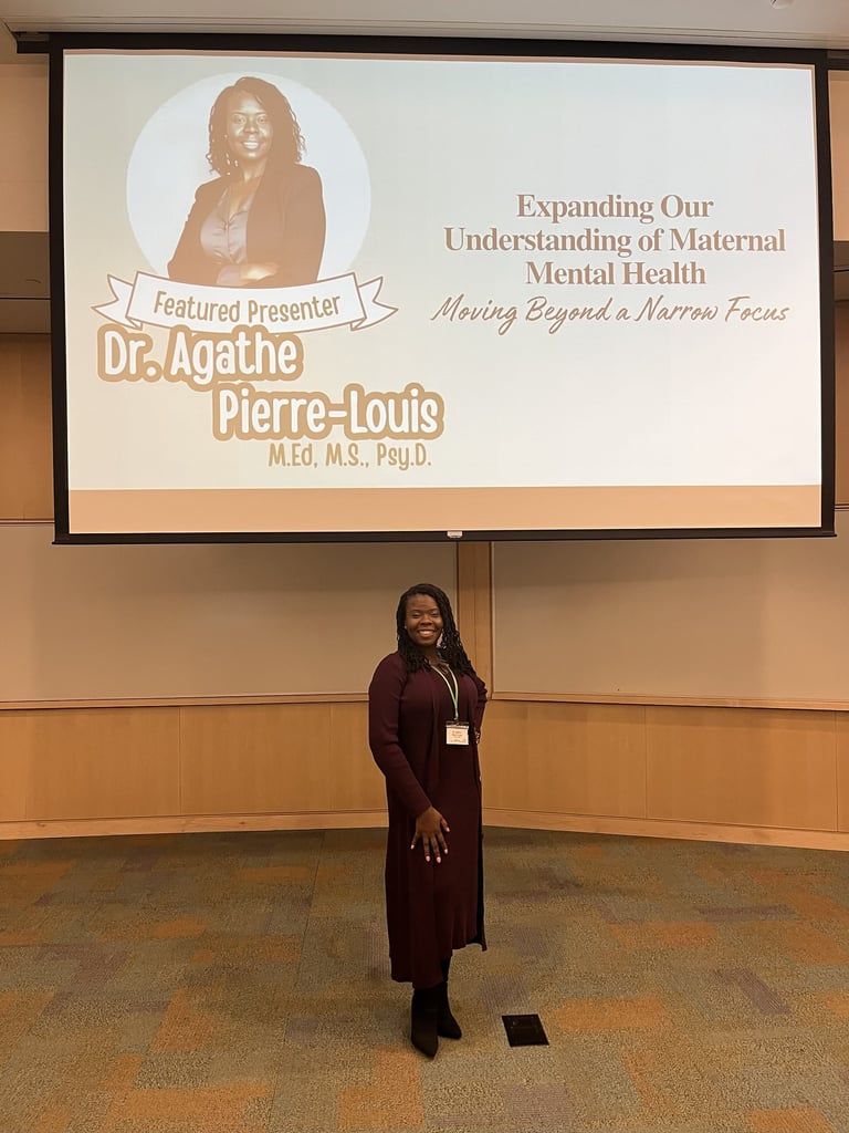In 2013, Dr. Pierre-Louis founded Embrace Therapy, a private practice dedicated to maternal mental health and the treatment of various psychological conditions. Dr. Pierre-Louis has presented on topics including postpartum depression and anxiety, motherhood, sexual health and spirituality, breastfeeding and mental health, teen dating violence, communication skills, and the secondary trauma experienced by healthcare providers.